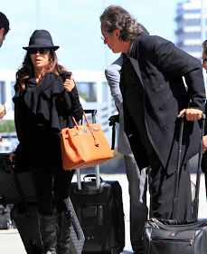 catches a flight out of LAX on Friday (March 25) in Los Angeles. She carries a 35 CM Birkin Bag in HERMES Orange with palladium hardware.